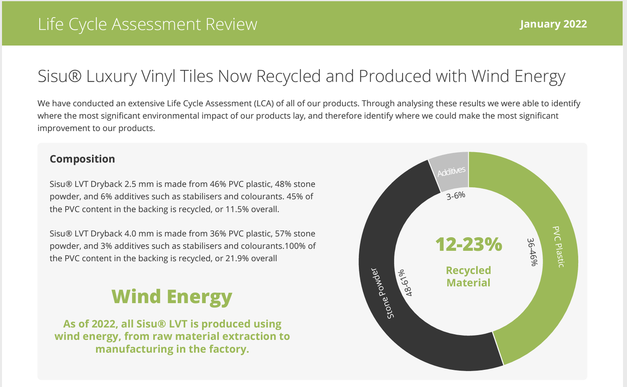 In 2021 EnviroBuild began our Life Cycle Assessment project. The question we’ve been asking ourselves is how sustainable exactly are our products and how can we improve? We looked at the entire product lifespan of particular ranges and did all the calculations necessary to find out. We completed LCA's for all our Hyperion Composites, Sisu Luxury Vinyl Tiles and Aluminium products.