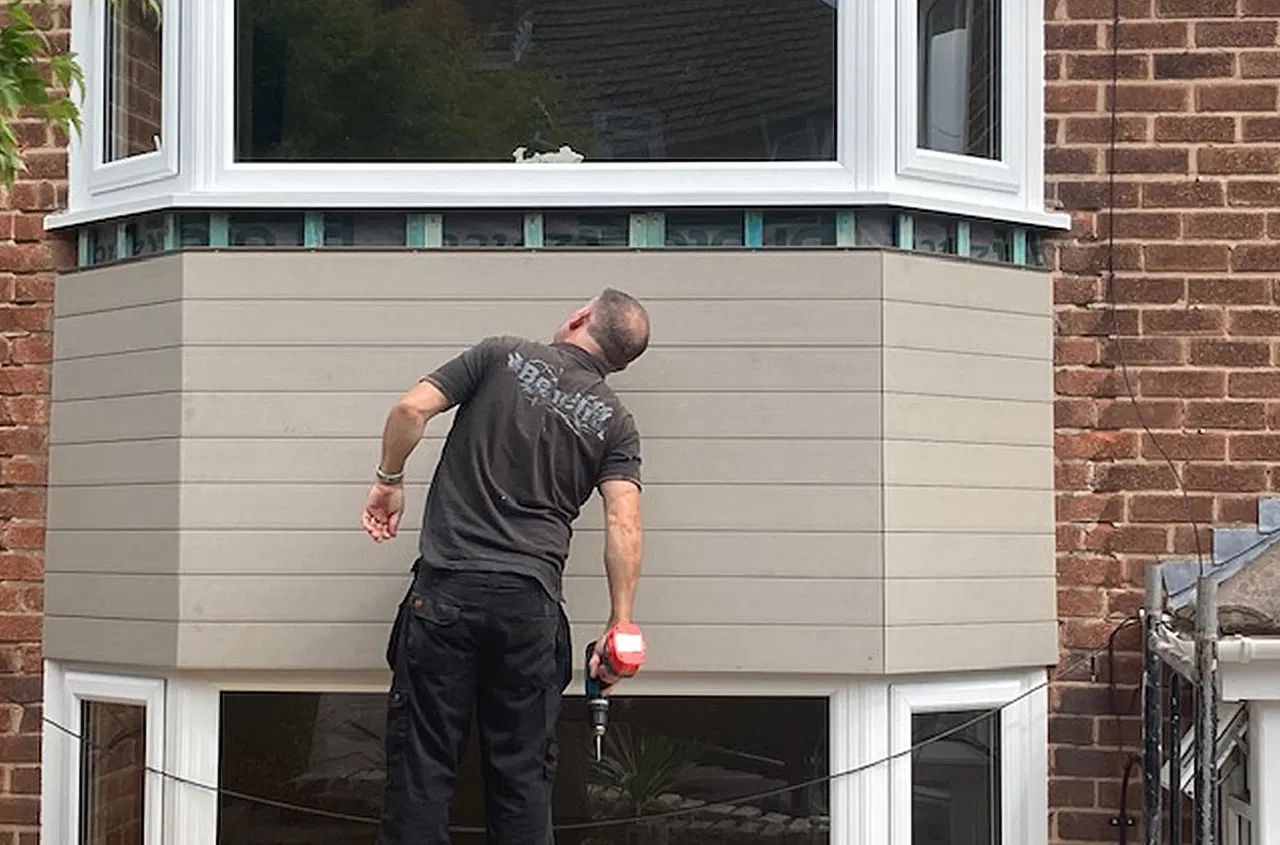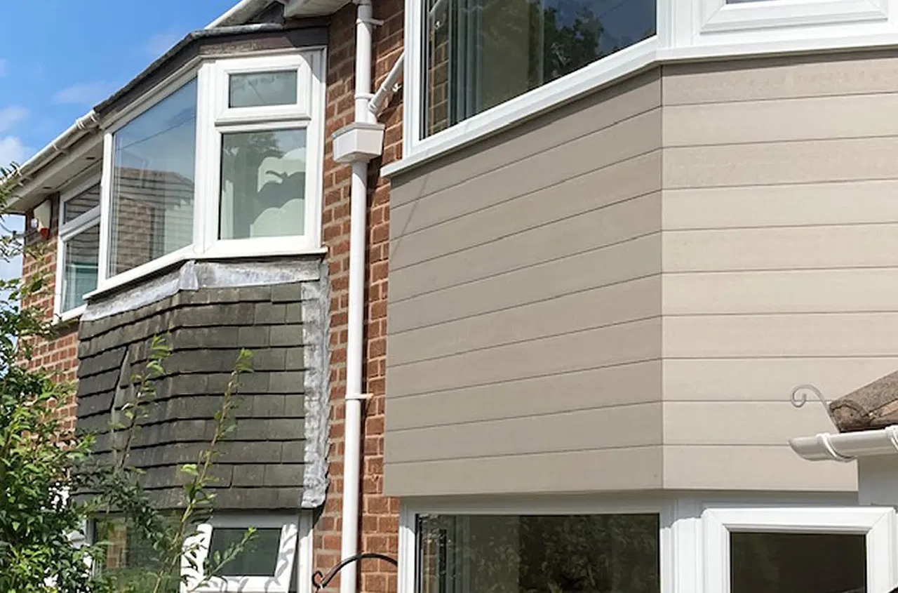 A DIY facelift for bay windows using Silver Birch Pioneer cladding, installed horizontally for a crisp, modern finish.