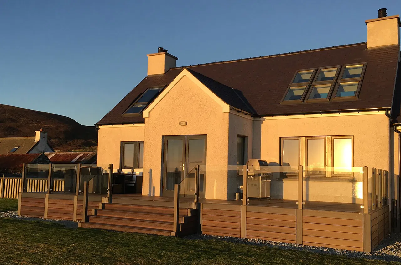 The Shetlands project demanded a material that could endure salt air, heavy winds, and high moisture levels, conditions that would rapidly degrade ordinary timber. The specification required a high-performance composite board with UV resistance, excellent dimensional stability, and strong resistance to corrosion and moisture ingress. The design also needed to preserve a natural look that complements the dramatic coastal scenery.