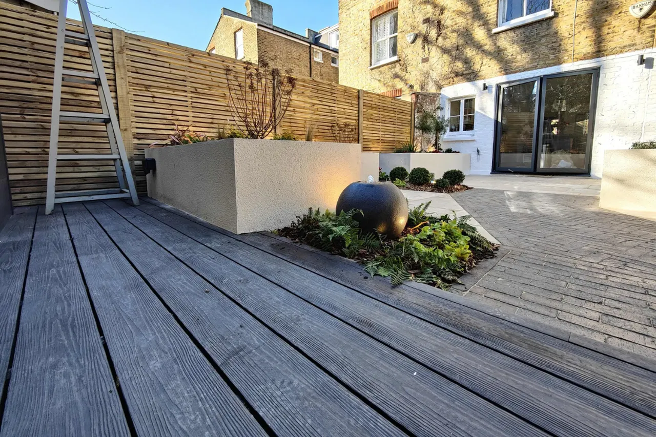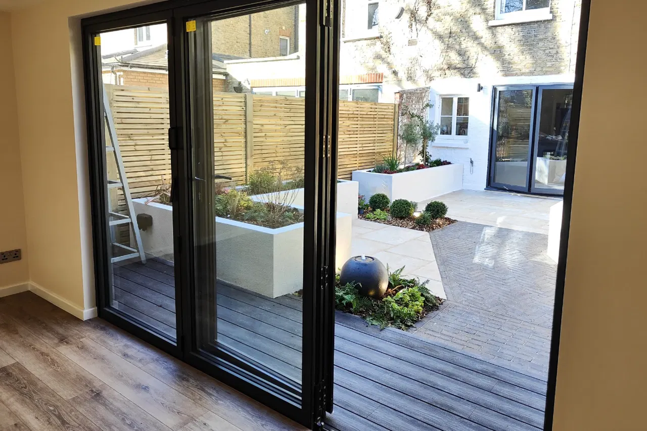 The client wanted to convert their simple city garden into a more usable, visually striking outdoor space that includes a dedicated garden room for work and relaxation. To support that vision, the existing patio was replaced, new raised beds were introduced, and planting was carefully selected. The new deck extends from the garden room using Granite composite decking, creating a smooth and stylish transition through the open bifold doors and linking the indoor and outdoor living areas.