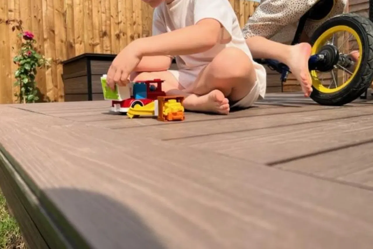 Creating a durable, safe and low-maintenance outdoor space using Hyperion Explorer Walnut decking, perfect for family life.