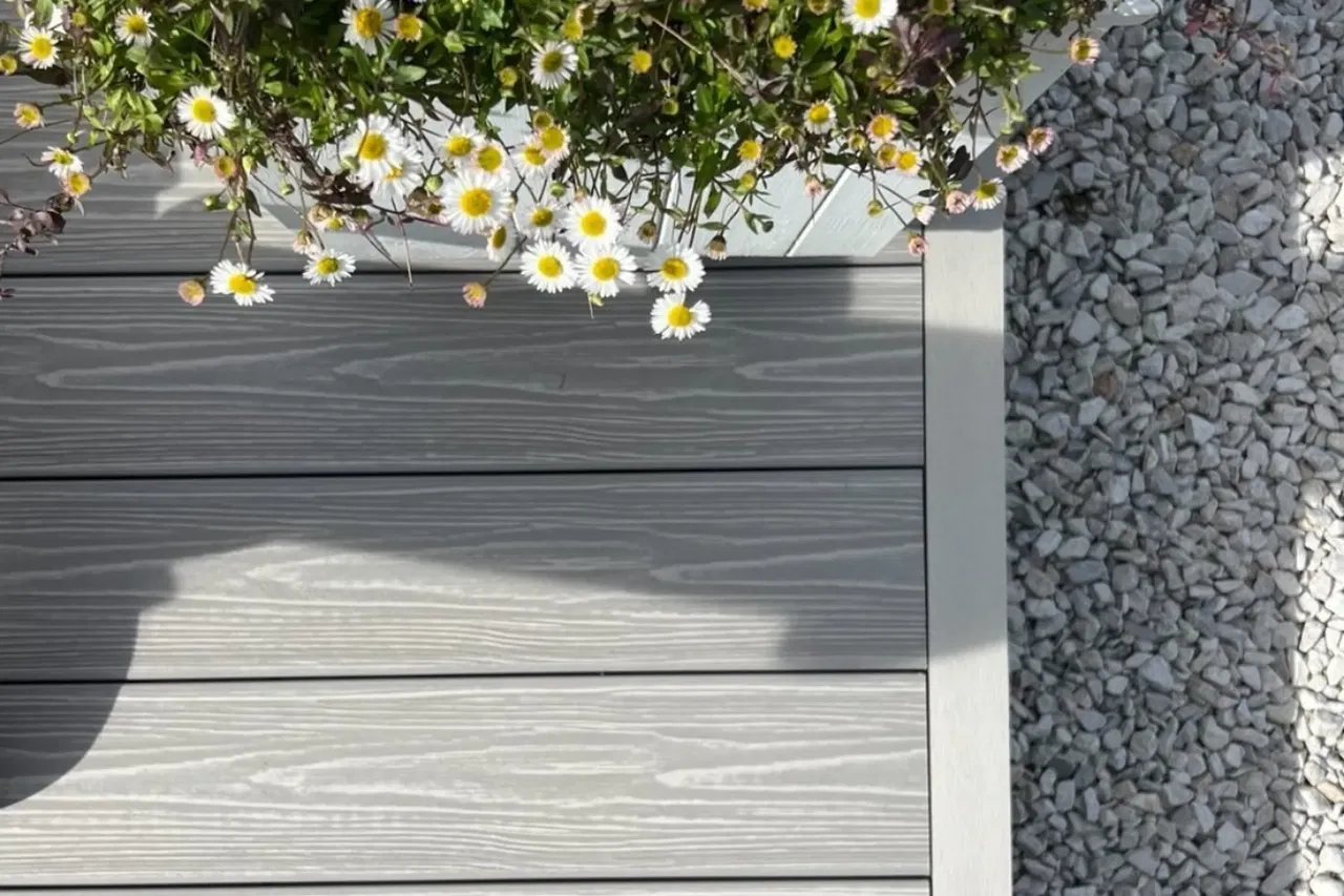 The project features Hyperion Explorer composite decking in Silver Birch, chosen for its natural weathered look and durability in a seaside environment. The non-slip surface makes it ideal for family use, while raised beds filled with coastal planting soften the hard landscaping. Covering 80 m², the finished garden delivers the charm of a weathered beach deck with none of the maintenance of traditional timber, a calm, family-friendly outdoor retreat that echoes its seaside setting.
