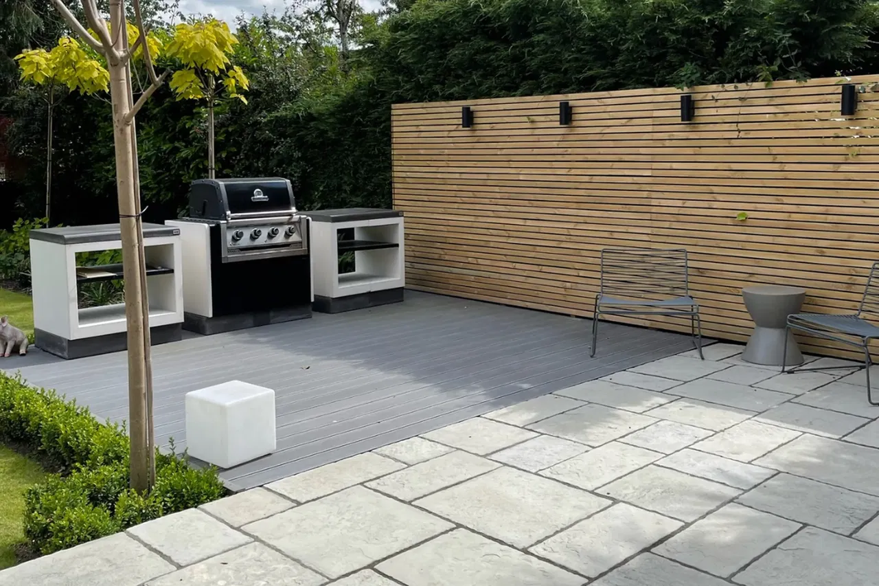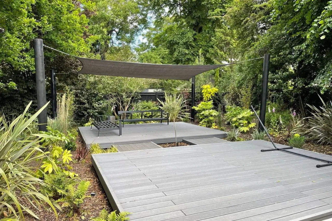 To execute the vision, the project used Hyperion Stone Explorer composite decking throughout both zones, delivering continuity in material and colour. This board range meets high sustainability standards and supports the eco-conscious ethos of the design. The material is durable, low-maintenance, and suited to outdoor environments. Using it consistently helped merge the two zones into one cohesive project while ensuring longevity and visual harmony.