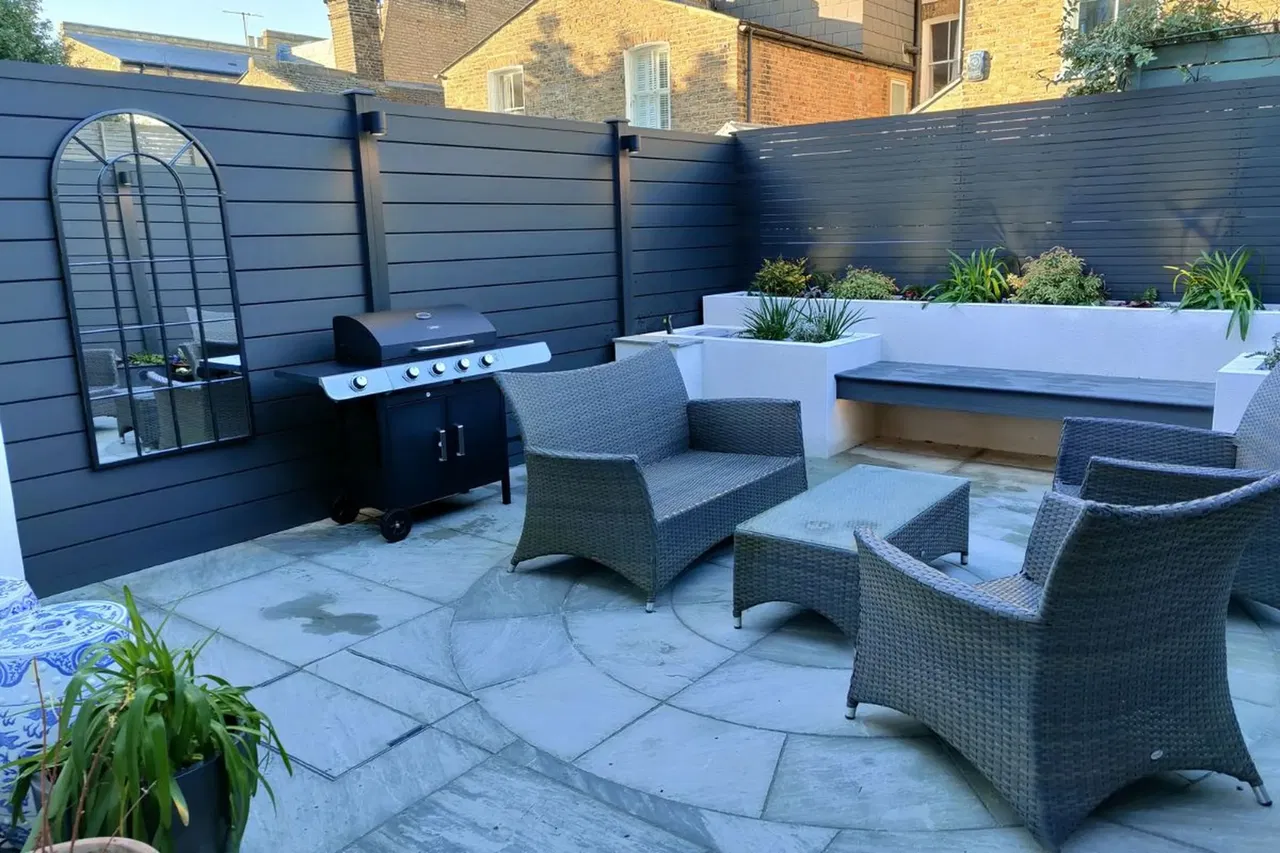 Elevating a modest city garden into a stylish urban retreat with Stone Pioneer fencing and integrated lighting.