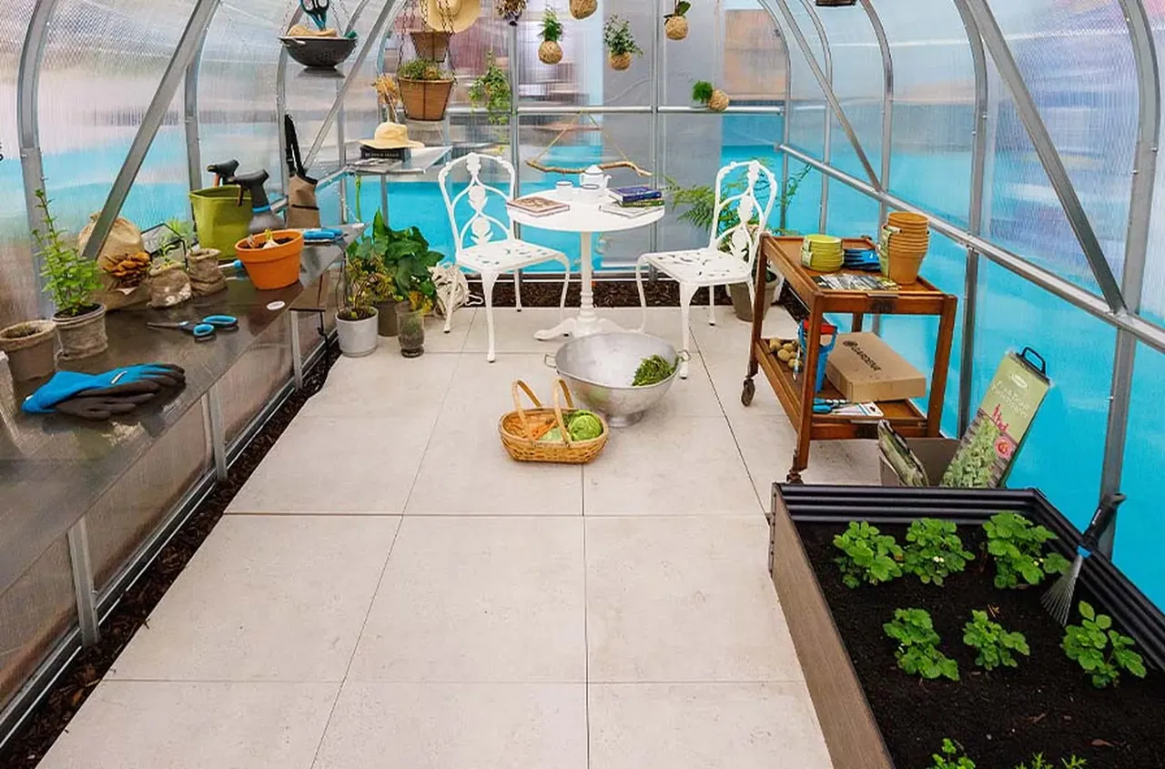 "Engineered to handle the unique challenges of a greenhouse, such as fluctuating moisture levels and high foot traffic, this paving offers exceptional resistance to stains and scratches while maintaining its pristine, light finish."
