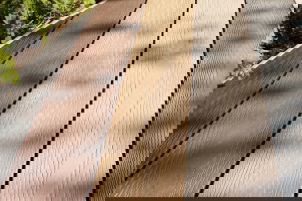 Capped composite decking: Features a durable polymer shell that resists both UV damage and tannin staining, offering superior fade resistance and longer-lasting colour.