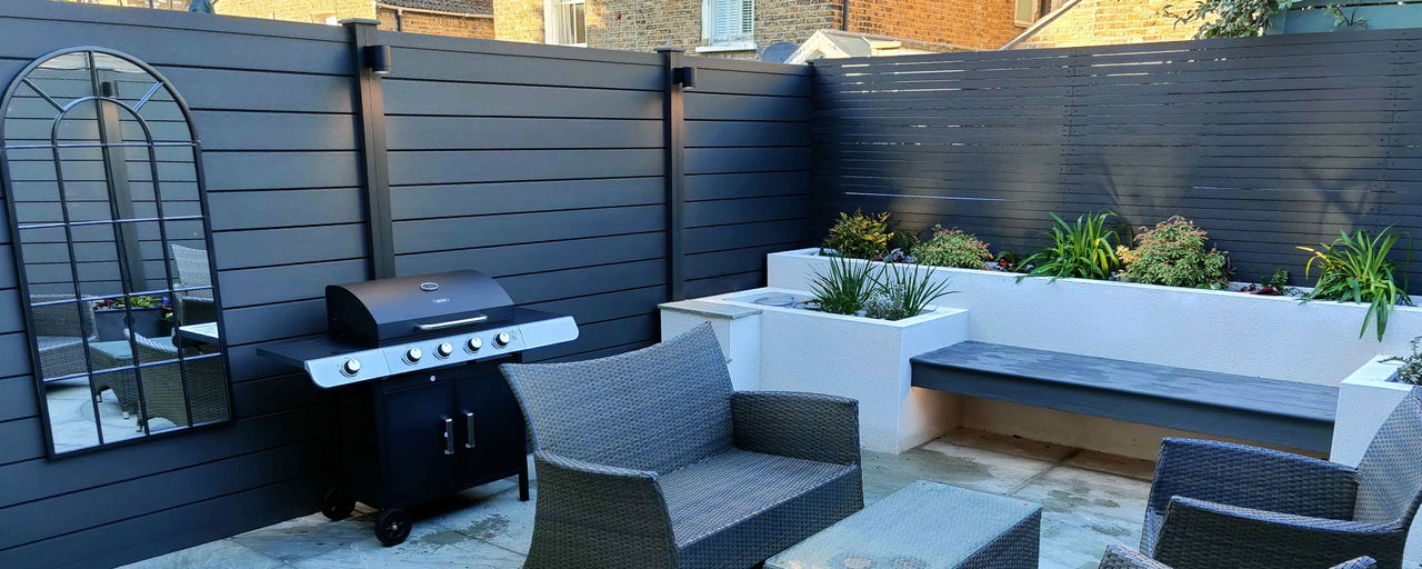 Our composite fencing system is designed to work for a wide range of garden projects: full panel kits for complete new builds, and retrofit kits for replacing tired panels on existing concrete posts.